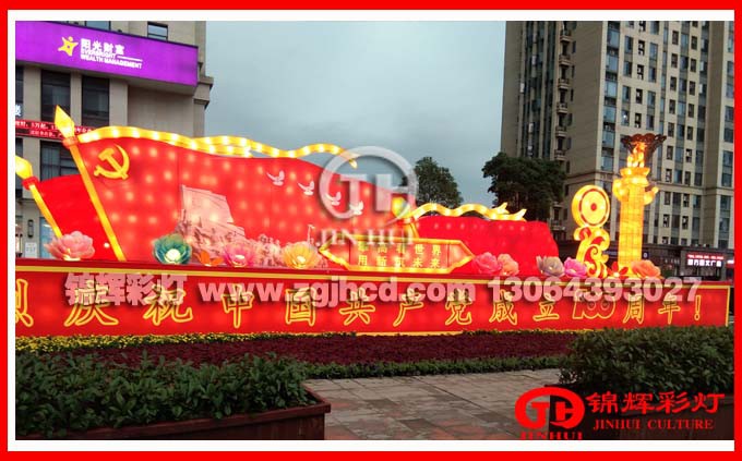 6月28号公司在接到任务时,离7月1日庆典大会还有4天时间,公司组织全体员工和彩灯技术力量主干加班加点完成彩灯组件制作,锦辉工匠有条有序组织协调,让每一们彩灯做到致美.经过两天制作,彩灯全部组件在自贡工厂加工完成,6月29日下午3点我们对彩灯打包,确保彩灯在运输途中不易损坏,看似不起眼的一个小环节,却是关健所在,这是确保彩灯从自贡到达展出现场不损坏的前提,彩灯从自贡出发后途经1600公里20小时在30号晚10点到达安装现场.当晚南昌天空不做美,下着小雨,我们从自贡过来的6个彩灯技师,通过23小时不合眼完成了彩灯制作安装.在7月1号晚彩灯点亮,宏伟的彩灯引来路人观看.